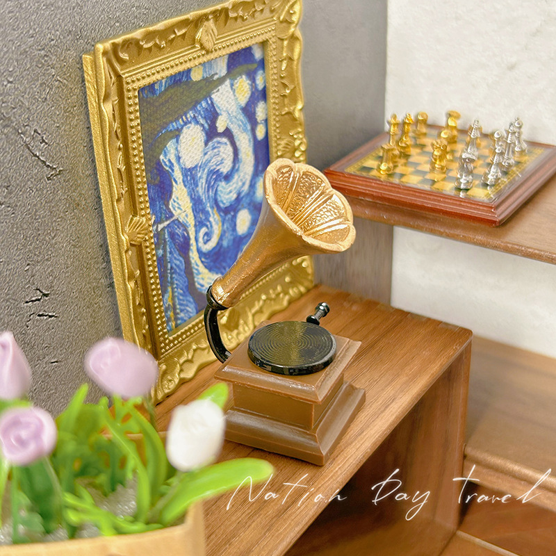 ミニチュアモデル食品おもちゃシーン ob11 小さな布人形ハウスアクセサリーレトロミニ蓄音機装飾品 B126