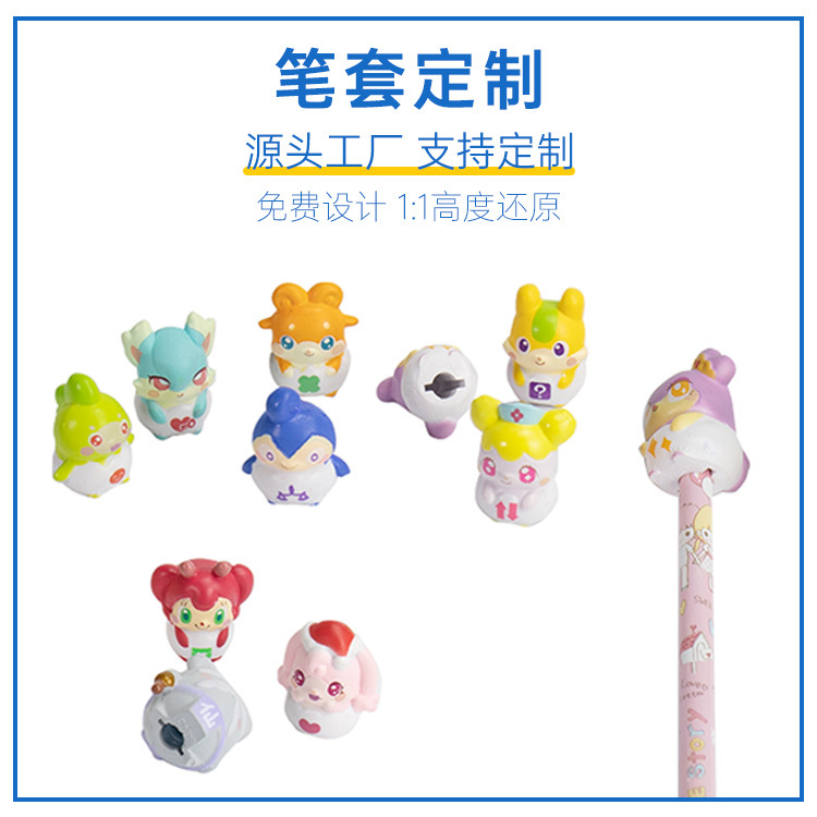 漫画公仔筆頭筆セット3d立体pvcソフトペンキャップ鉛筆中性ペンセットソフトプラスチックペン