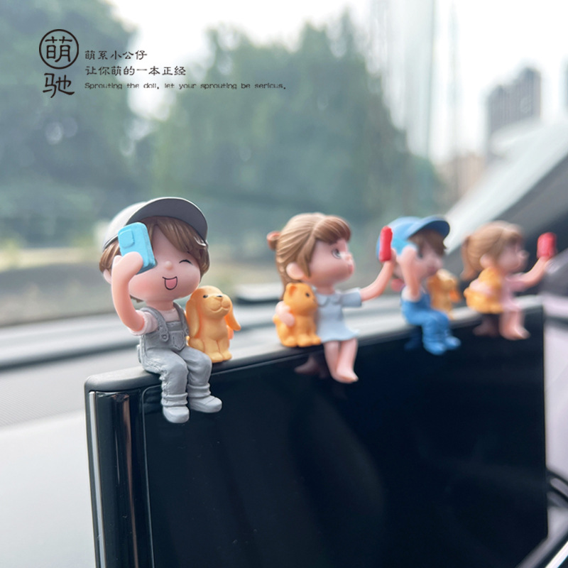 漫画自撮りスツール小さなカップル車のクリエイティブな装飾品人形マイクロ風景装飾品 PVC 素材の装飾品