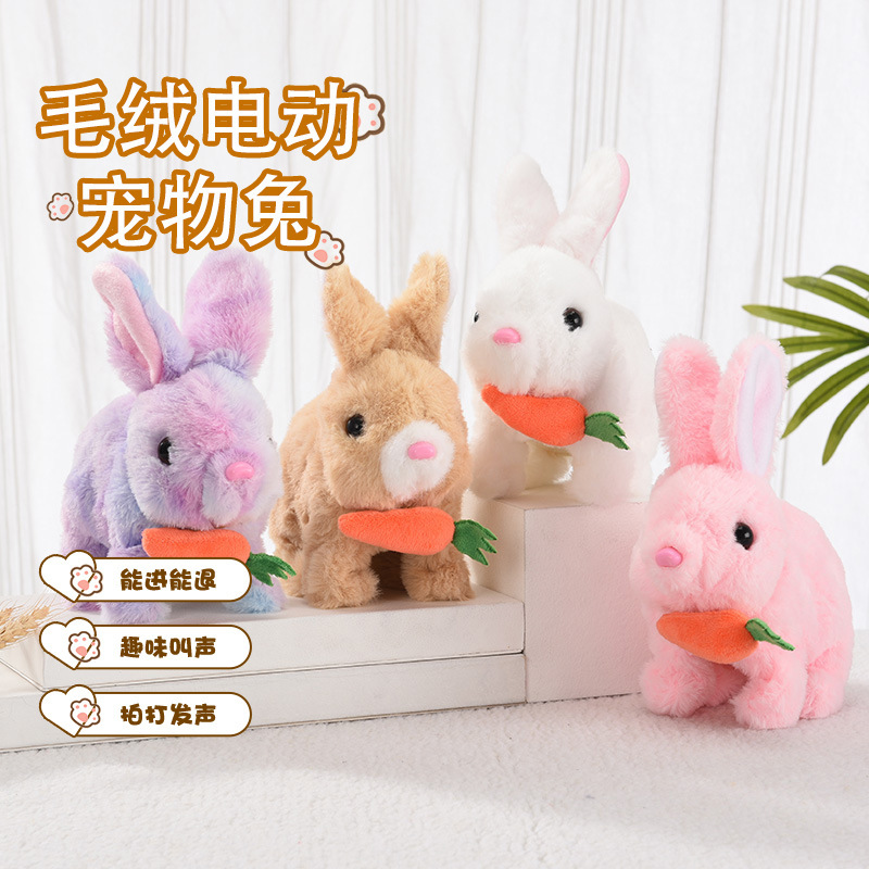 電動のぬいぐるみのニンジンのウサギの人形は口を動かして耳を動かします。