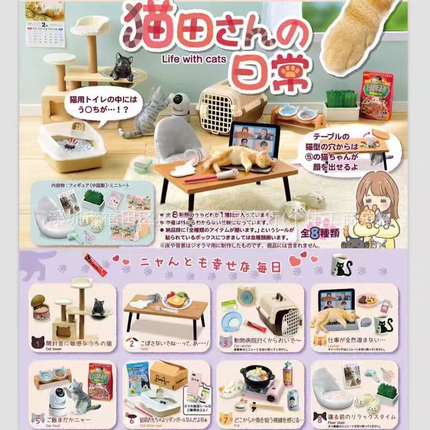 トレンディなブラインドボックス 私と猫の日常 ミニチュアシーンシミュレーションモデル トレンディなモールド 猫ハウスコレクション 6箱入り