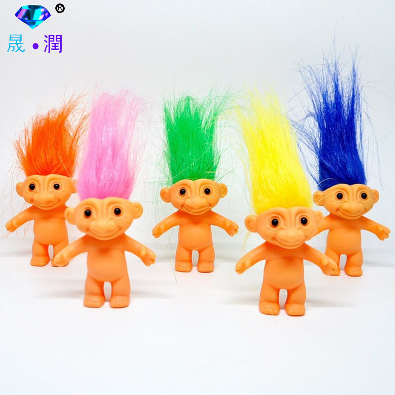 インディアンの毛の子供の醜い子供のエナメルpvcの子供の復古の大きいモデルの人形の80後の6cmの高い長髪の巨魔のおもちゃ