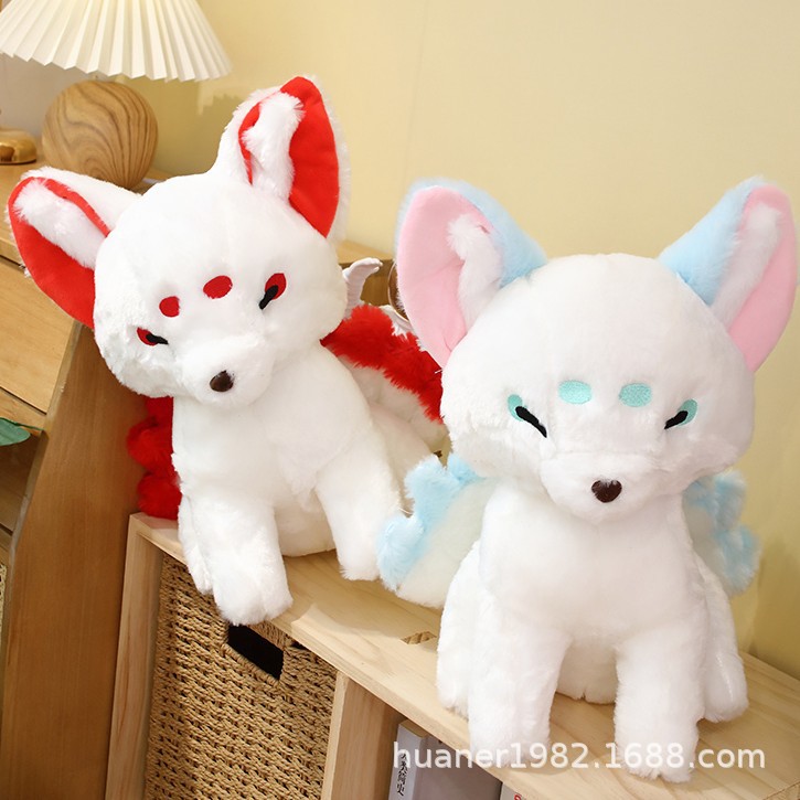 かわいい九尾狐のぬいぐるみの女の子が抱いて寝ています。