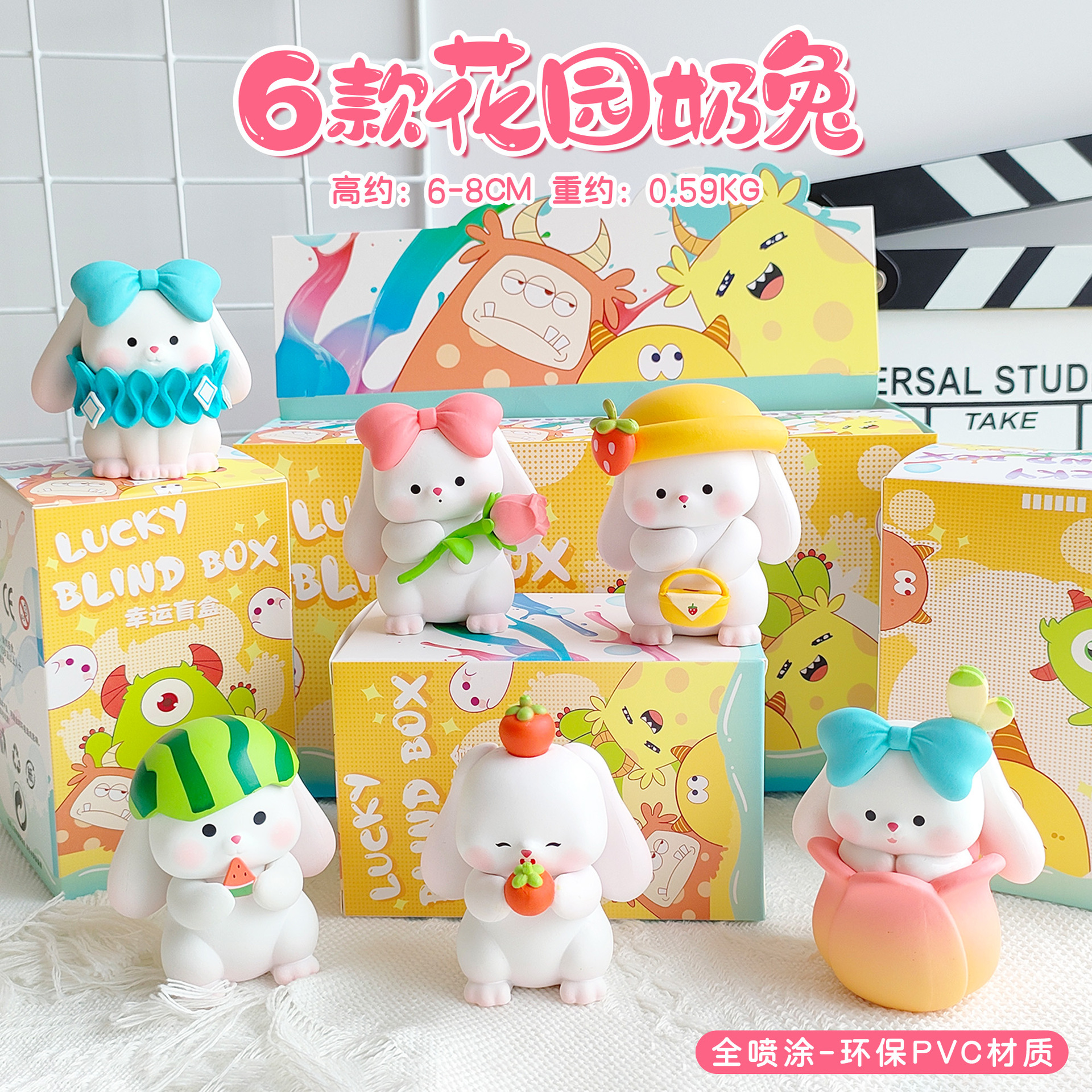 かわいい花園の乳のウサギの6種類の創意の潮は漫画の動物の公の仔の手を遊んで小さい置物の装飾の卵のマシンの人形を作ります。