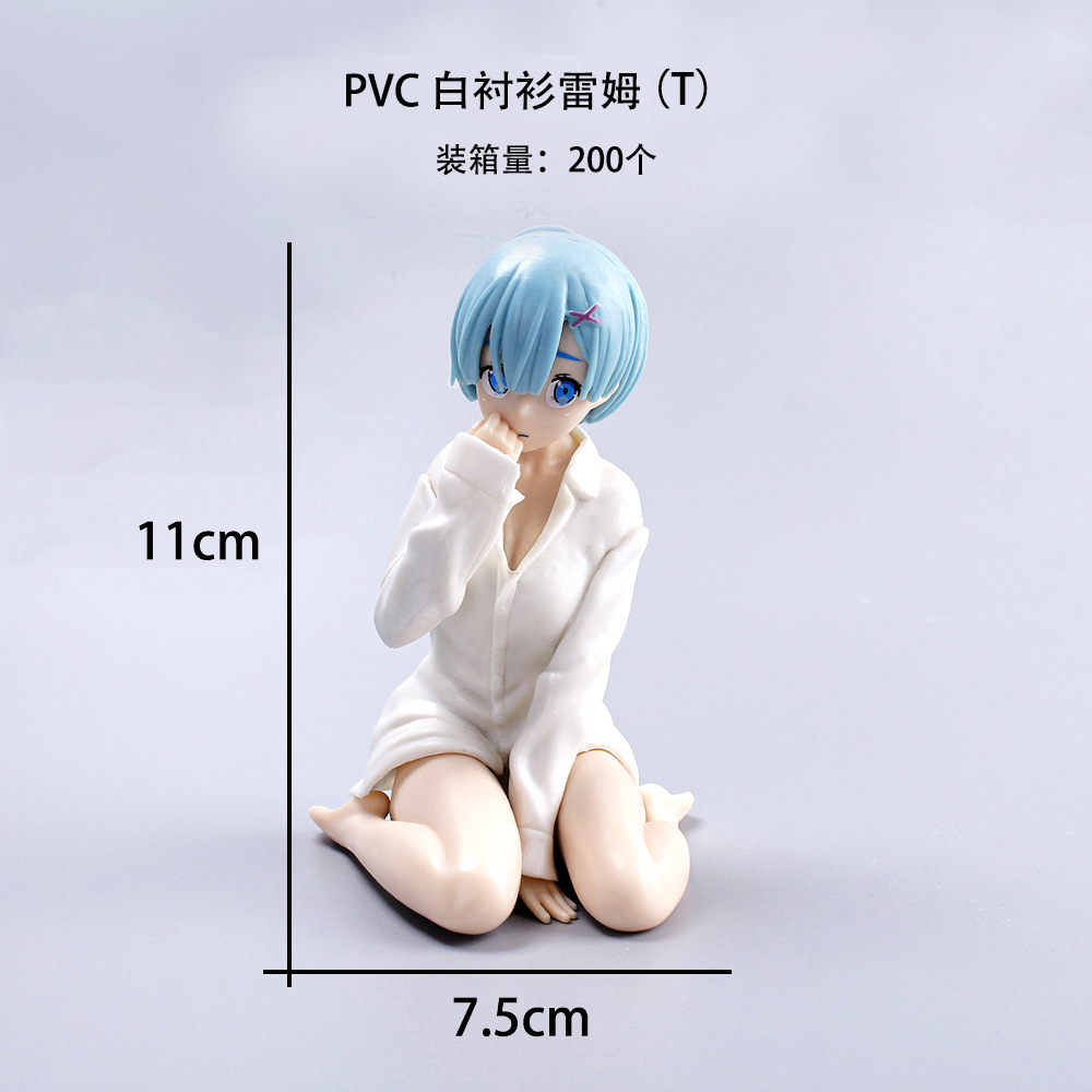 白いシャツのレムの座り方の生活のアニメの周辺の模型の手作りの置物の車の装飾の置物