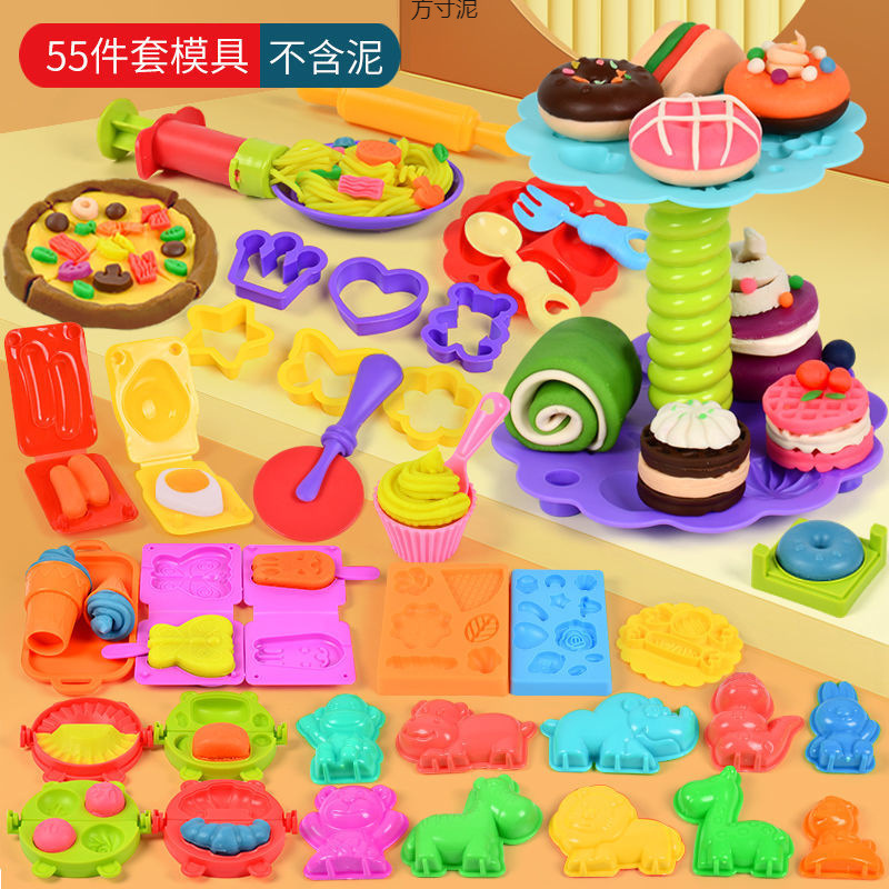 ケーキのデザート台の幼稚園の女の子のおもちゃの粘土の粘土のゴムの泥のツールの鋳型のセットの55セットの卸売り