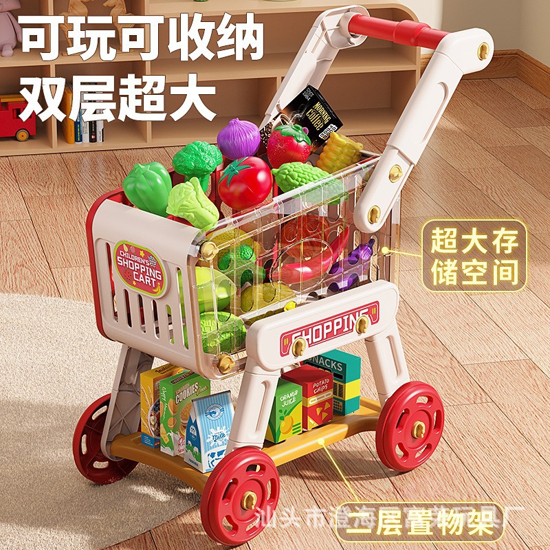 子供のままごとはショッピングカートのおもちゃの赤ちゃんの小さい手押し車の果物のスーパーの男の子の女の子をシミュレーションします。