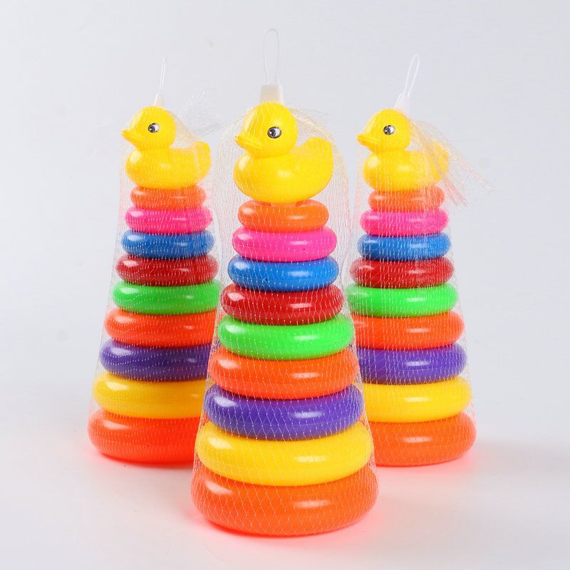 子供の積み重ねのおもちゃの9階の虹の塔のセットのアヒルの9元の9のおもちゃの卸売りの小さい黄色のアヒルの輪のおもちゃ