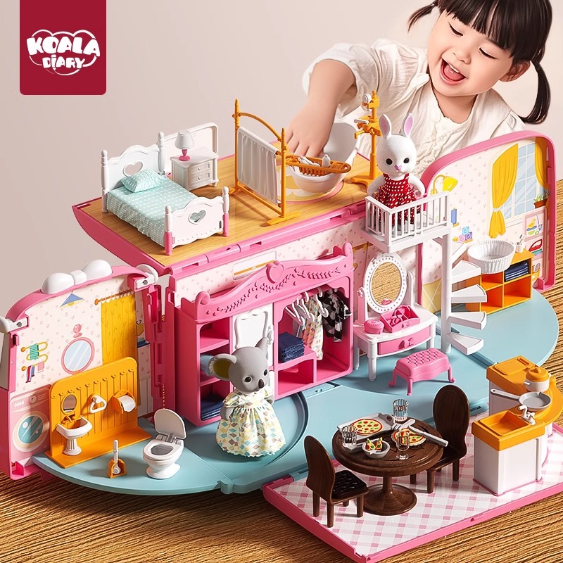 コアラ日記収納変形トレーラーバススクールバス人形屋DIY子供ままごと女の子おもちゃクロスボーダー