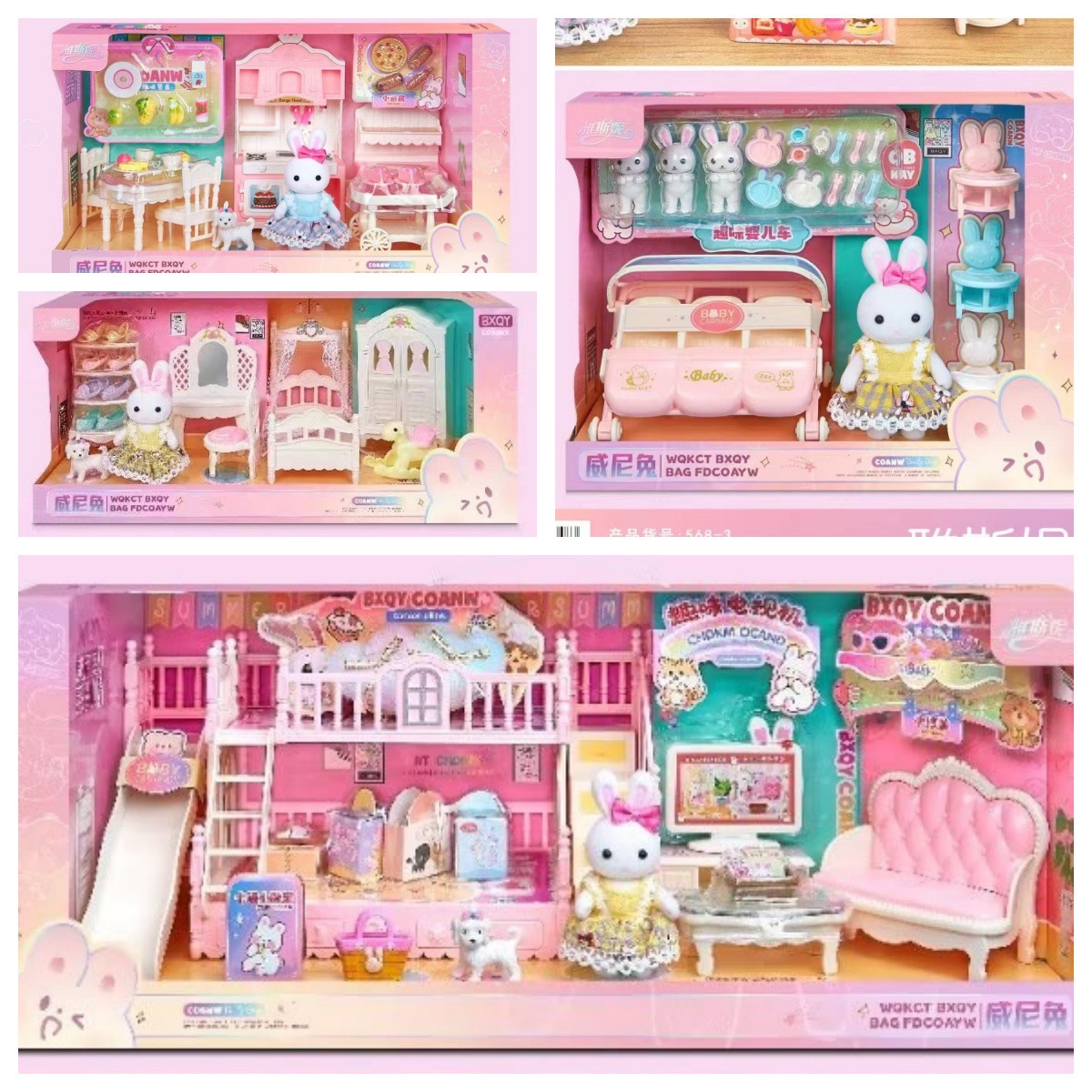 ヤスニー568ウィニーウサギの暖かい寝室セット二段ベッドのリビングルームに子供のままごとのおもちゃを並べます。