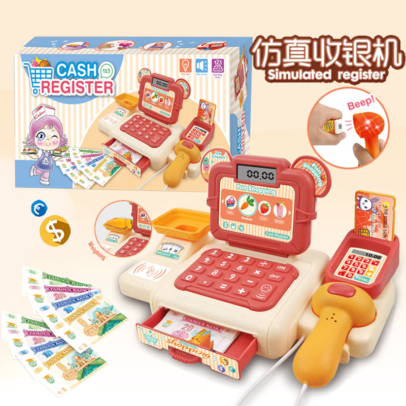 外国貿易の新型のシミュレーションの漫画のスーパーマーケットのレジのおもちゃの家電シリーズの子供のままごとの電動の照明の効果音