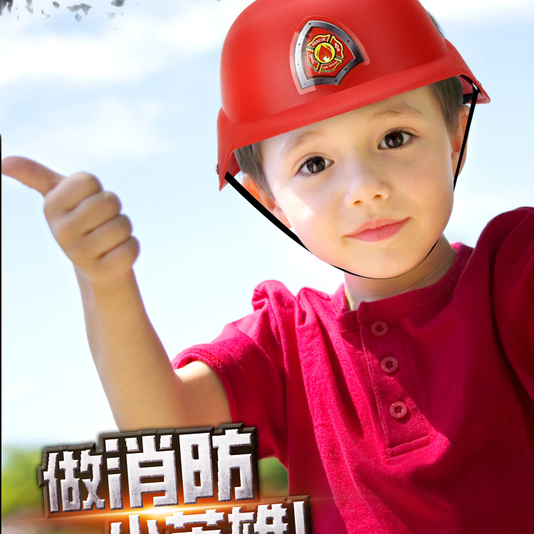 子供のプラスチック消防帽のおもちゃの赤い火災の消防ヘルメットのままごとの役は消防士のおもちゃを演じます。