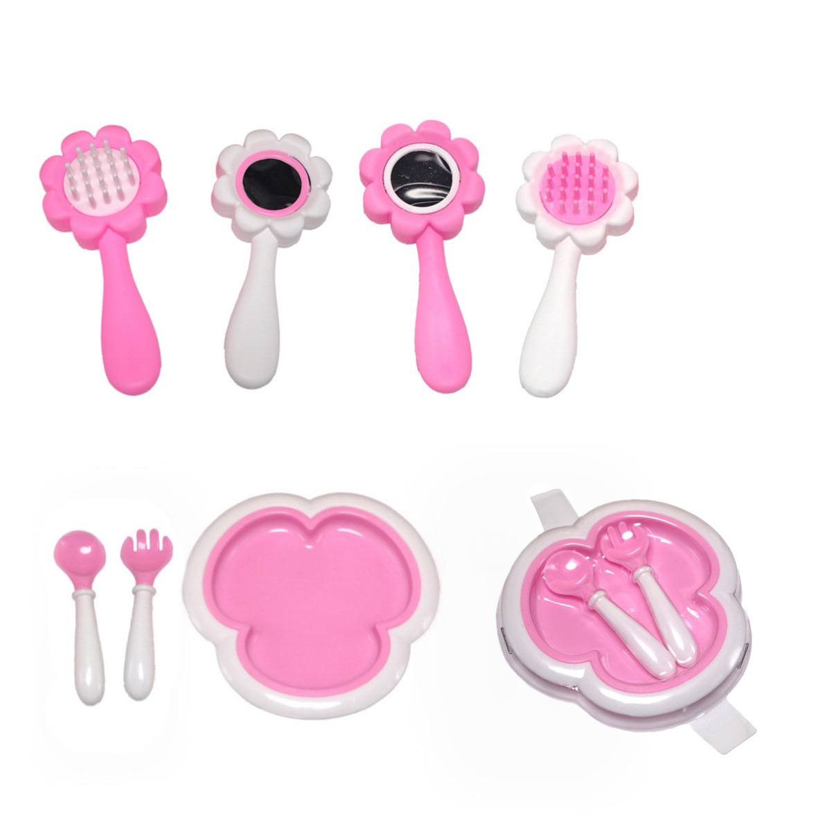 14-18inch 人形おもちゃアクセサリーディナープレートフォークスプーンブリスターコームミラーままごと親子シミュレーション授乳ケア