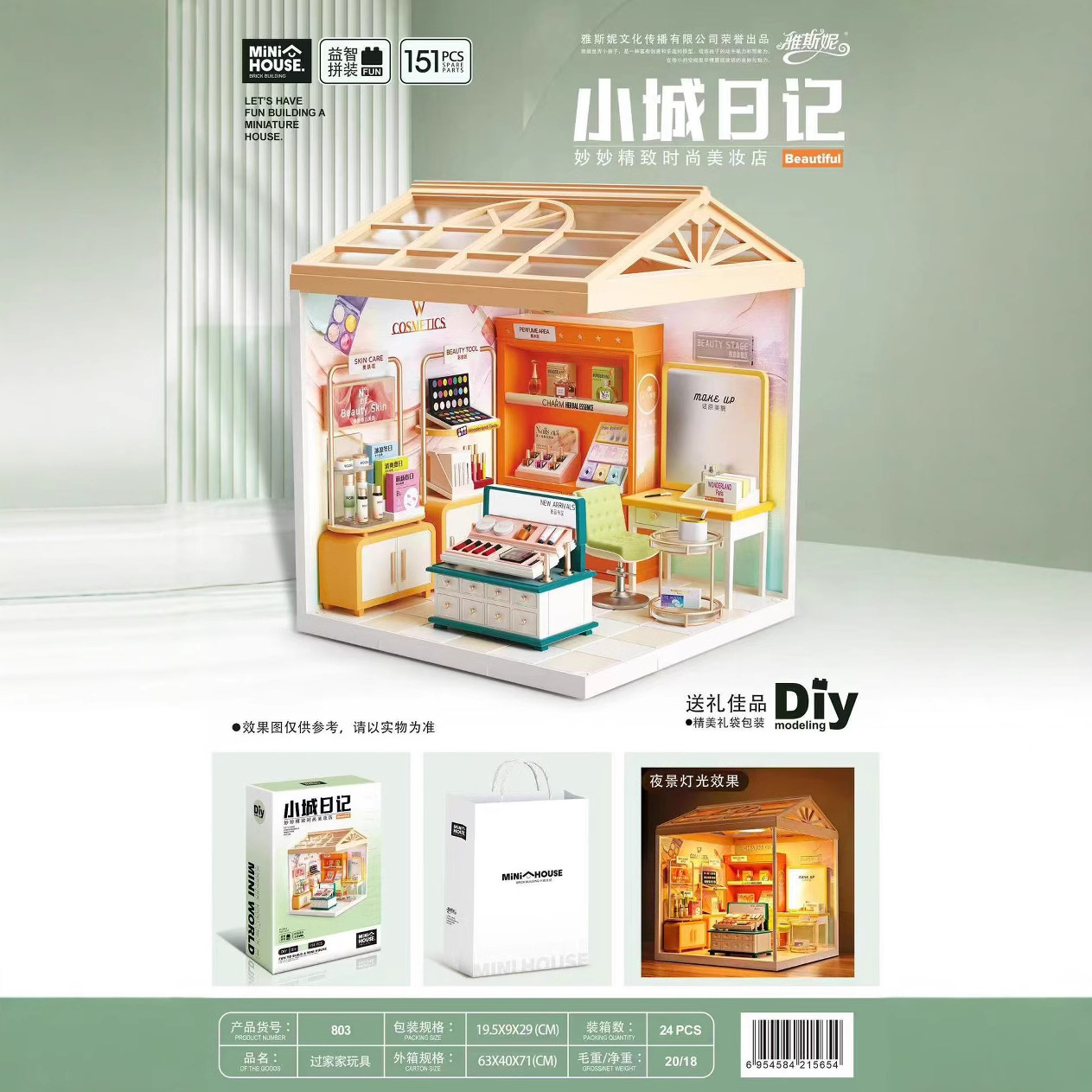小さな町日記組み立ておもちゃ Miaomiao シリーズ DIY キャビンモデルビルディングブロック立体装飾品おもちゃ美容ショップ