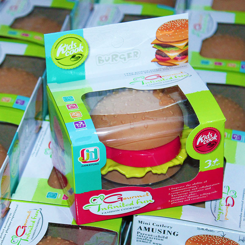 子供のままごとのおもちゃの台所のハンバーガーの箱のハンバーガーのおもちゃは積み木の美食のおもちゃの2元の百貨をつづり合わせます。