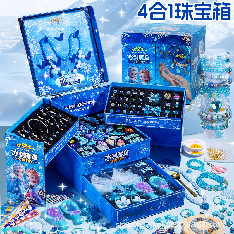 ままごと DIY 手作りビーズ ヘアピン ジュエリー 親子インタラクティブ キラキラ流砂 チャーム ボックス入りおもちゃ。