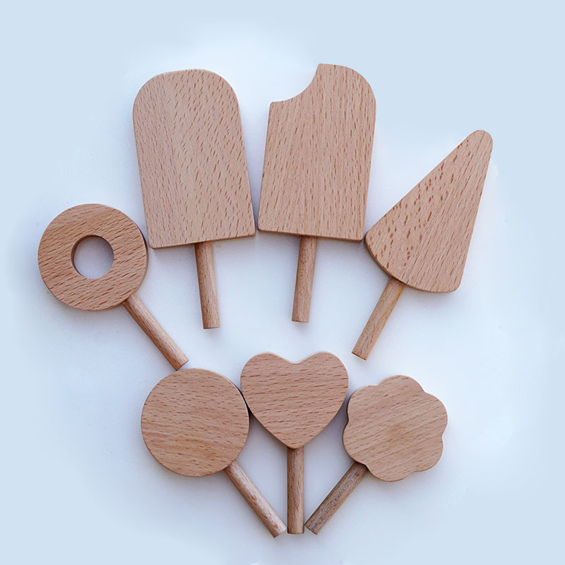 Ins熱売アイスクリーム創意棒氷原木日本式ケヤキ子供撮影道具天然彩色絵diy落書き
