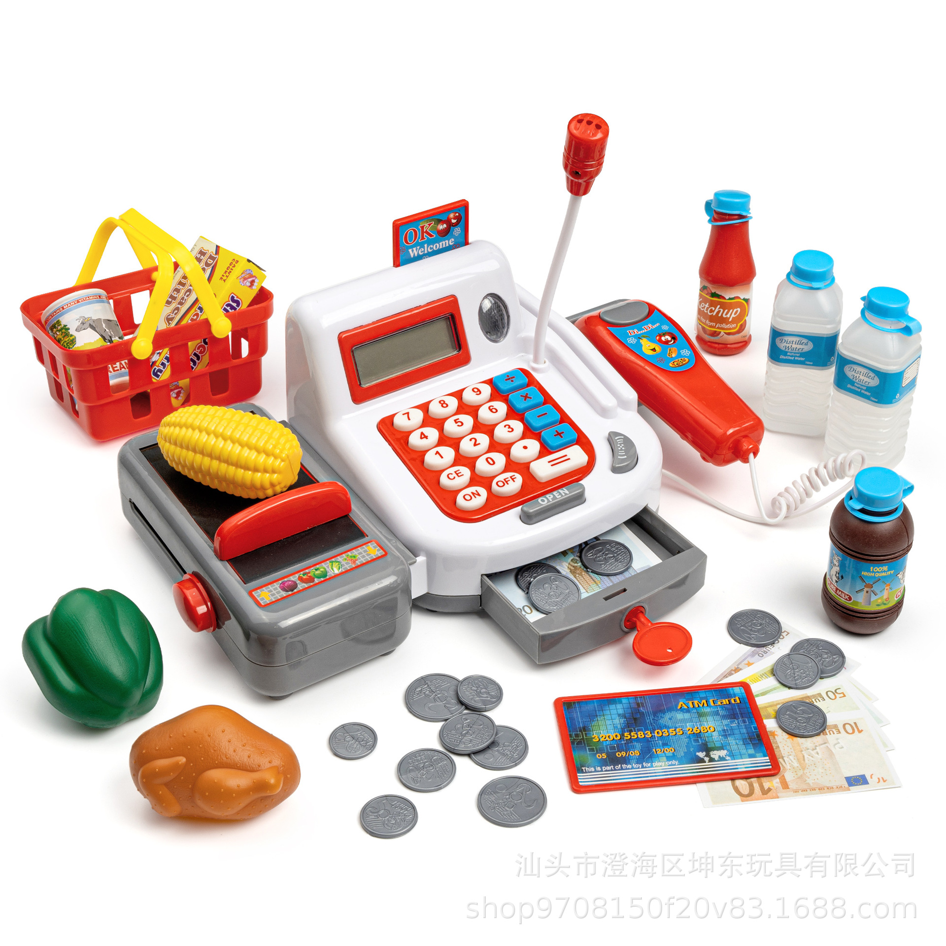 子供のままごとは電動レジのおもちゃスーパーのレジに買い物かごセットを持っています。