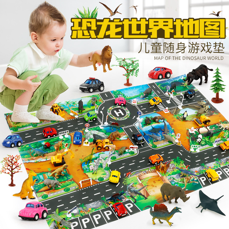 国境を越えた児童玩具ゲームマット83*57恐竜世界交通駐車場の景観マットはカート動物に合うことができる
