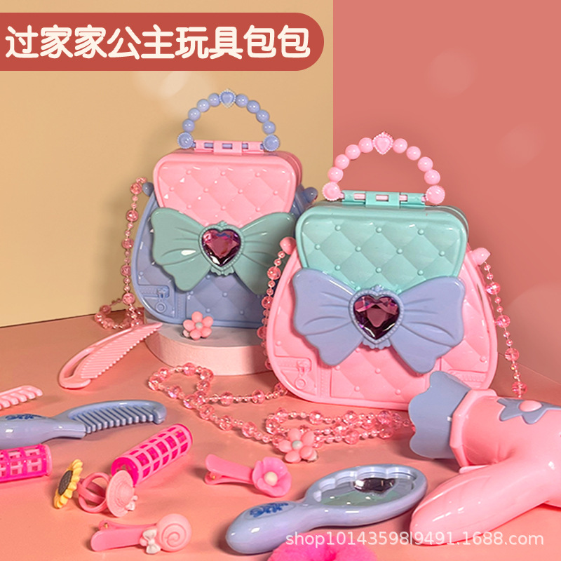 クロスボーダープリンセスおもちゃバッグ、ままごとドレッシングテーブルアクセサリーセット、女の子シミュレーションプラスチックヘアアクセサリーミラー