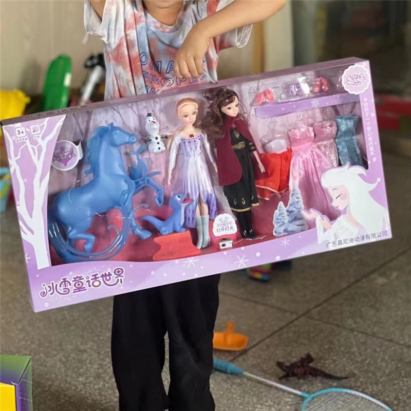 子供の夢幻の氷雪の2人のスーツの大きいギフトボックスの電動の照明の音楽は子供の女の子のままごとのおもちゃに着替えます。