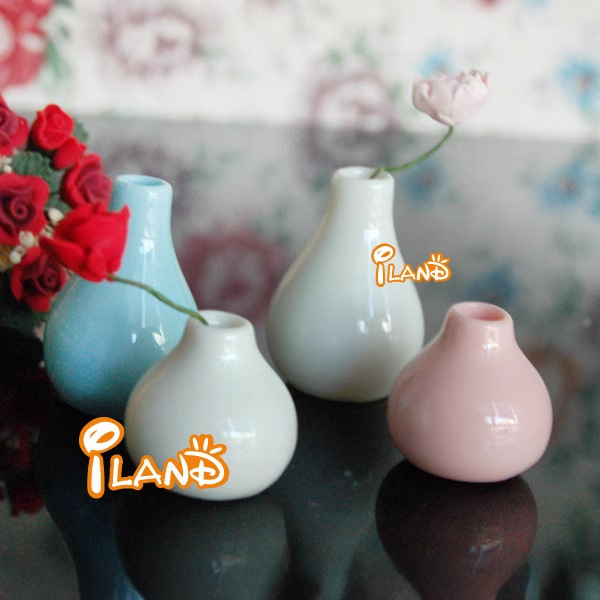 Diy 1:12人形屋dollhouseミニ陶磁器粉白/蘭白花瓶2点セット