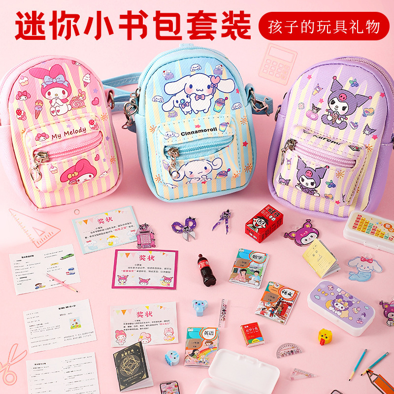 ミニランドセル、模擬小物一式、ミニチュアミニ文具本、子供用女の子のおもちゃガジェット