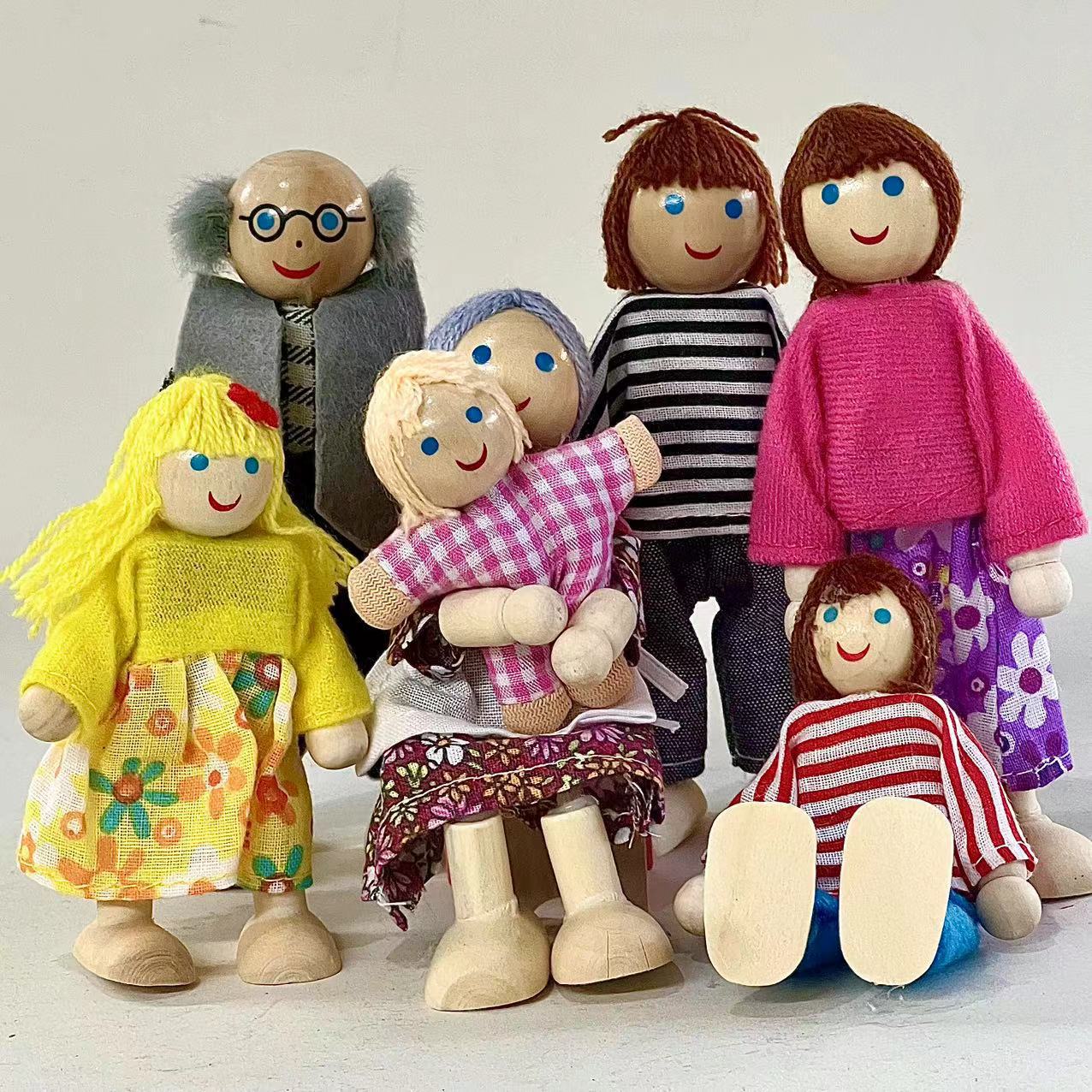 家族人形6口7口木制おまままごと人形乳幼児玩具人形関节可动
