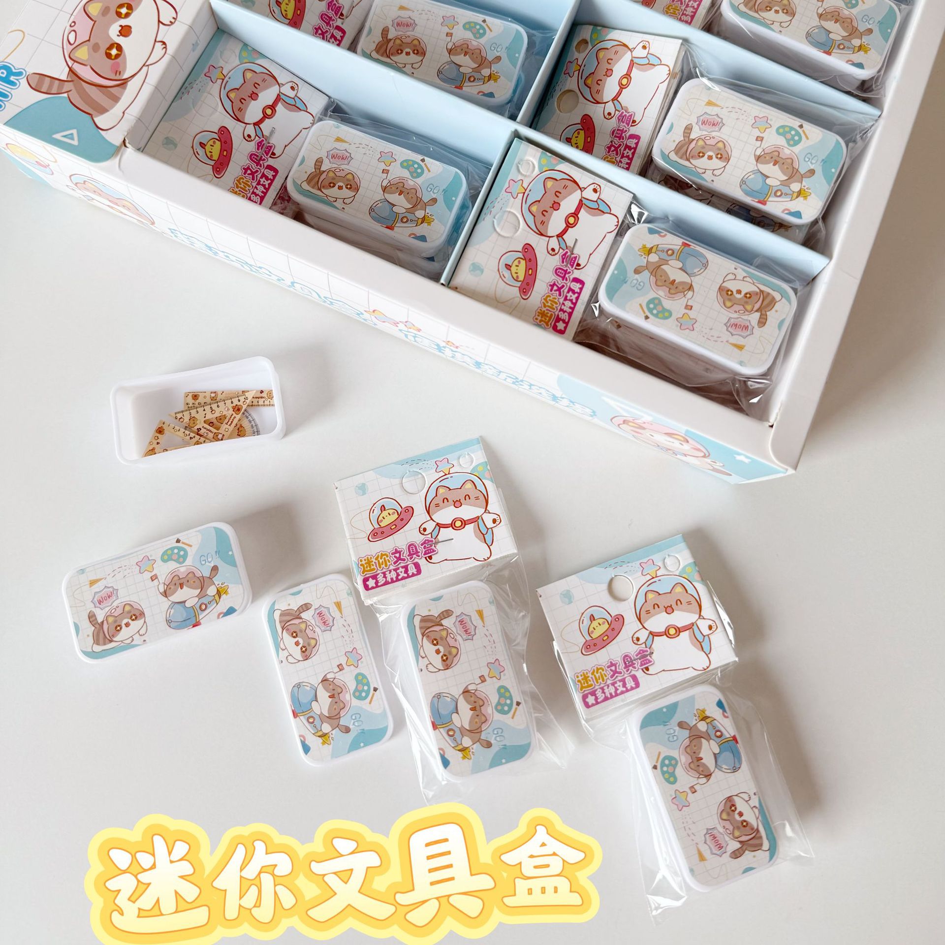 ミニ文具箱学生ミニチュア文具モデルミニ定規セット学習シーン小さな装飾品おもちゃ