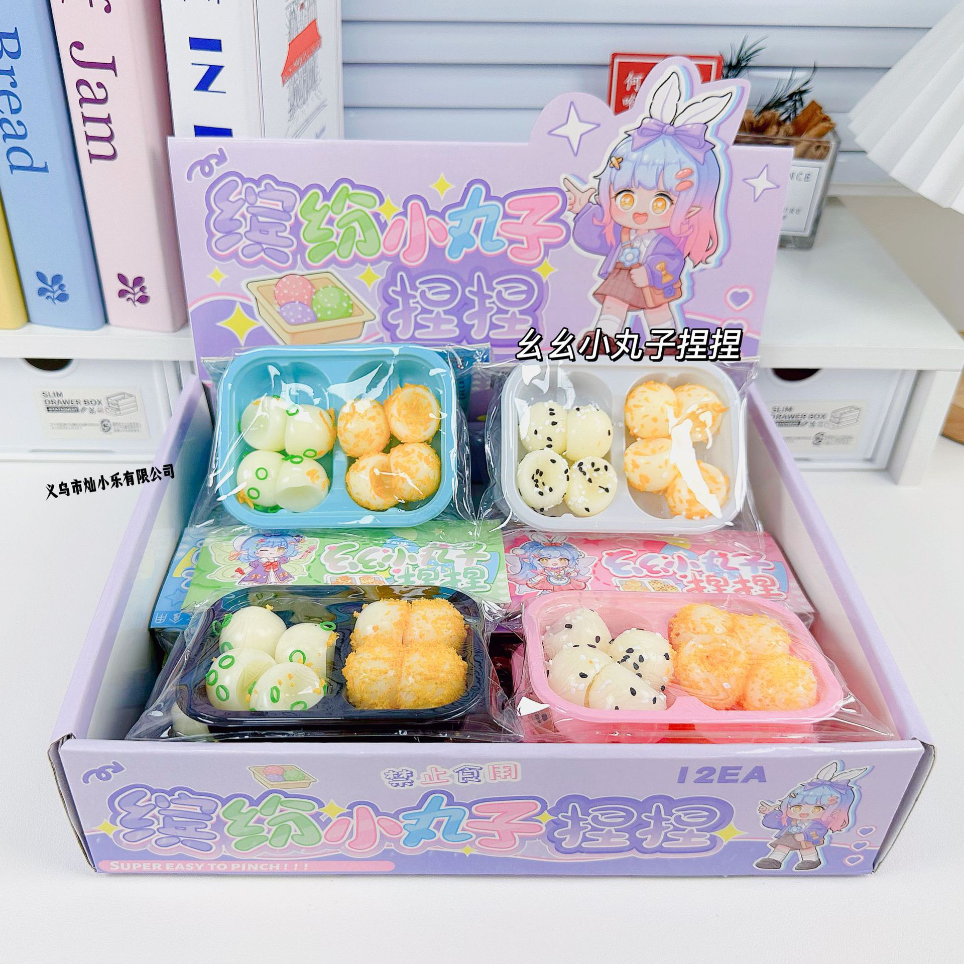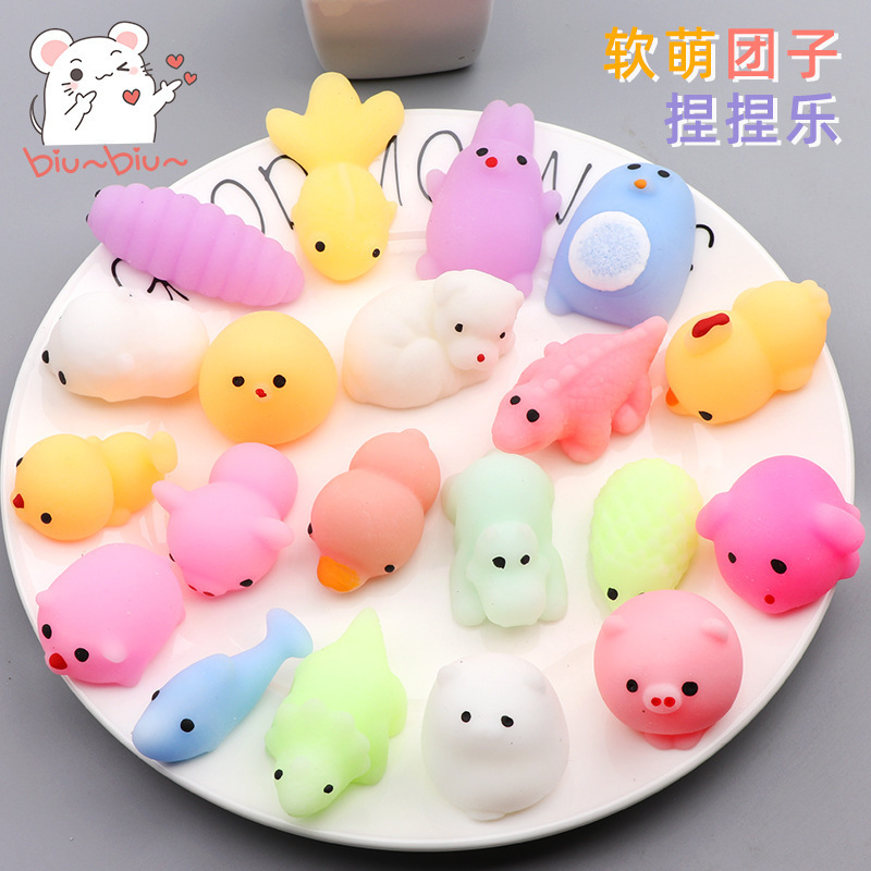 小団子は何をしているのか、カラフルなソフトキャンディは文房具店の売店の新製品文房具をつまんで減圧玩具を解凍する