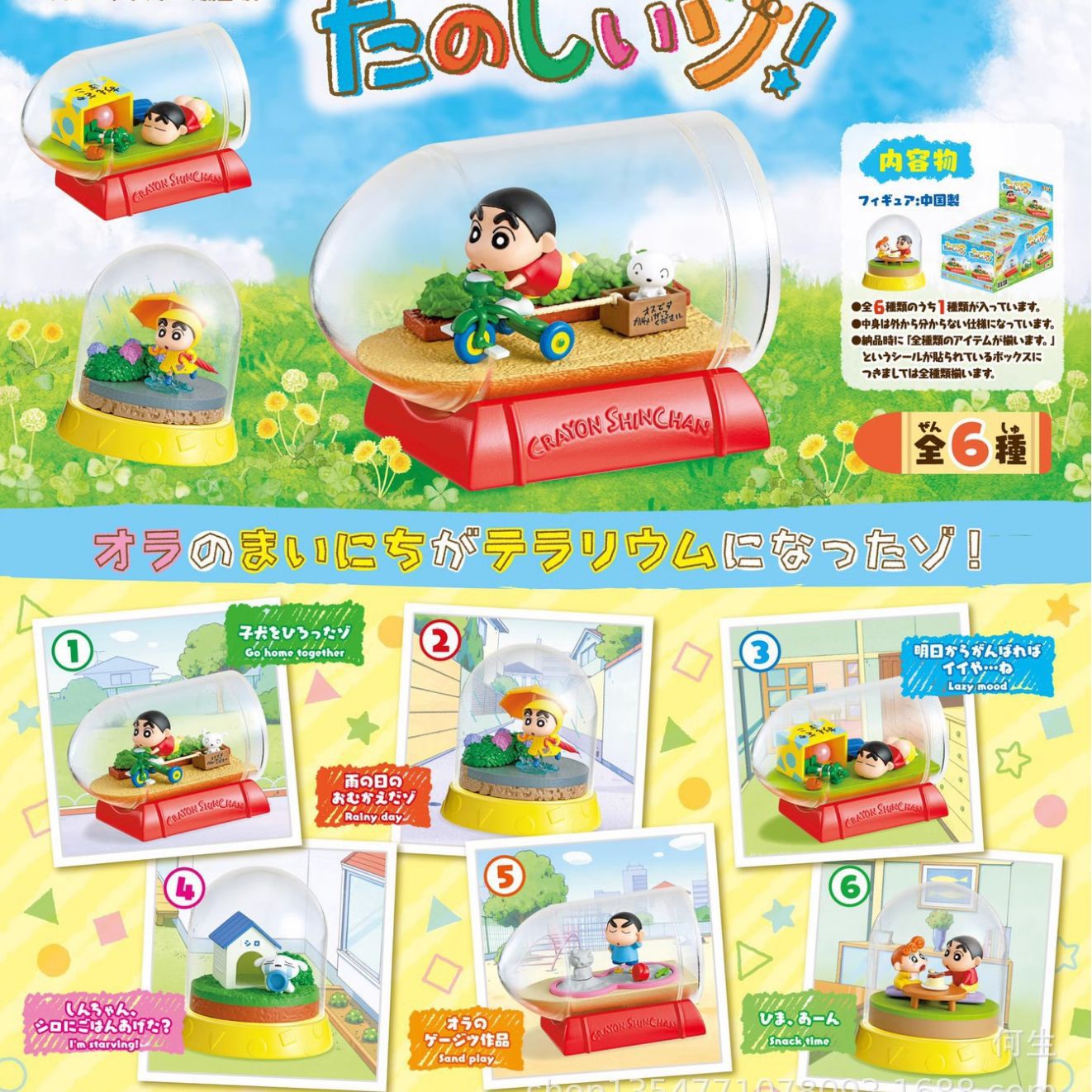 潮游盲箱置物クレヨンしんちゃん瓶の中で日常のシーンを少し縮めて子供の箱の卵をつかみます。