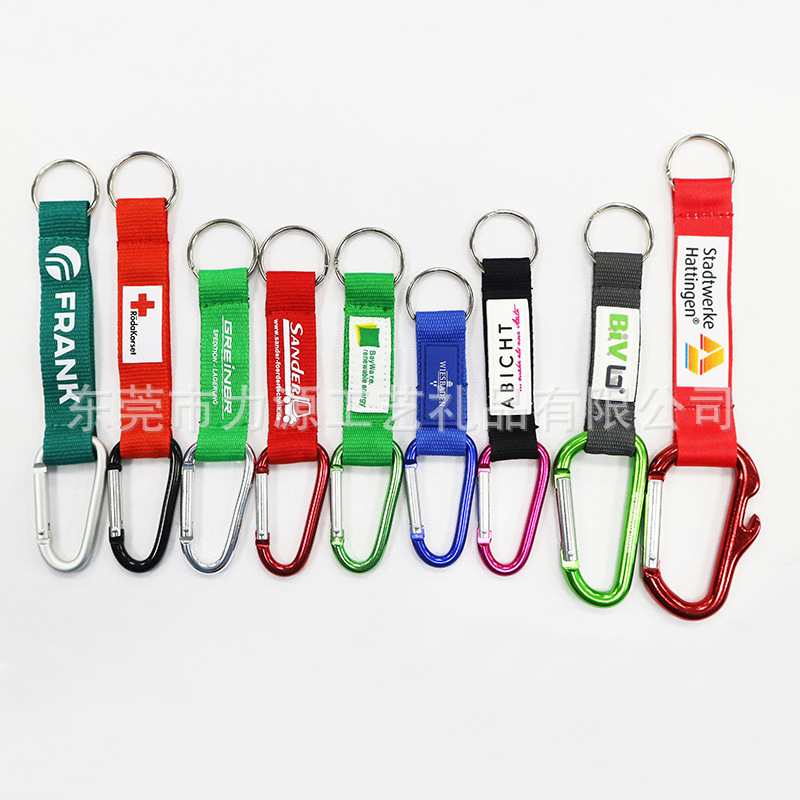 工場カスタムアルミ合金カラビナストラップ卸売カラビナ織りストラップギフトキーホルダー栓抜き