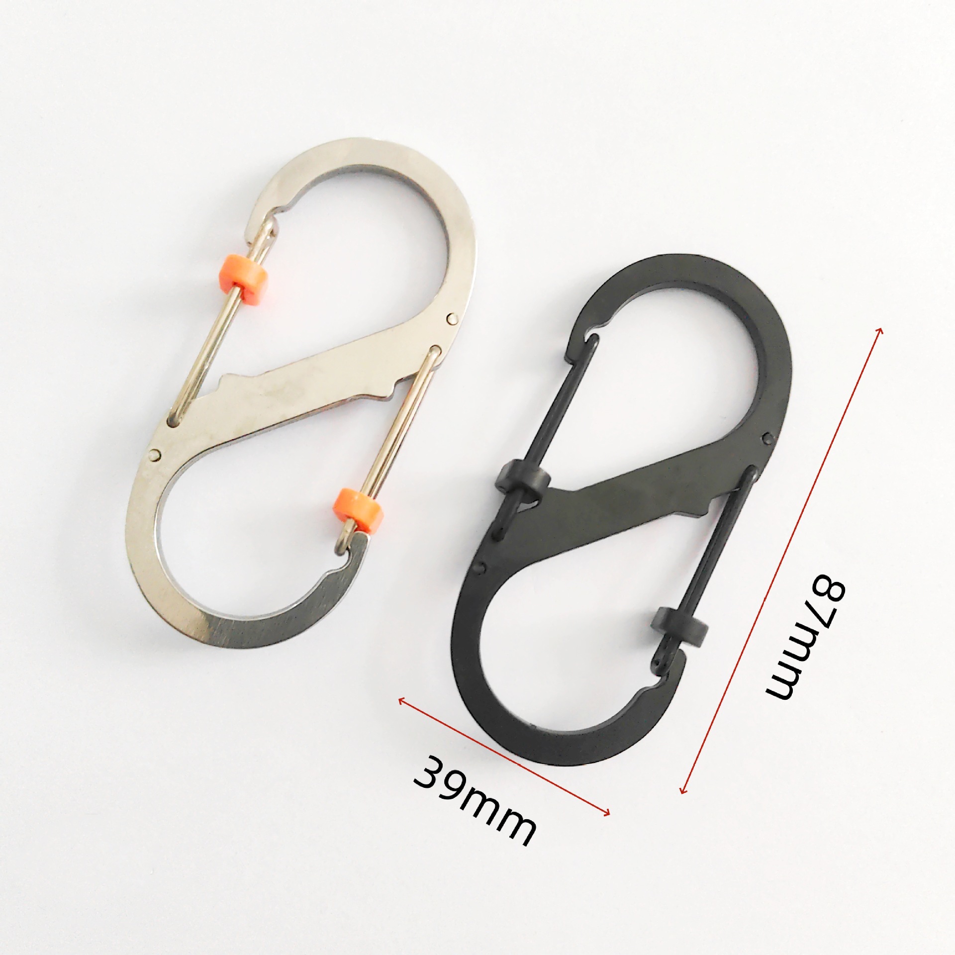 304ステンレス登山ボタンs型8字ボタン多機能フック屋外キャンプ耐久防錆快掛キーホルダー