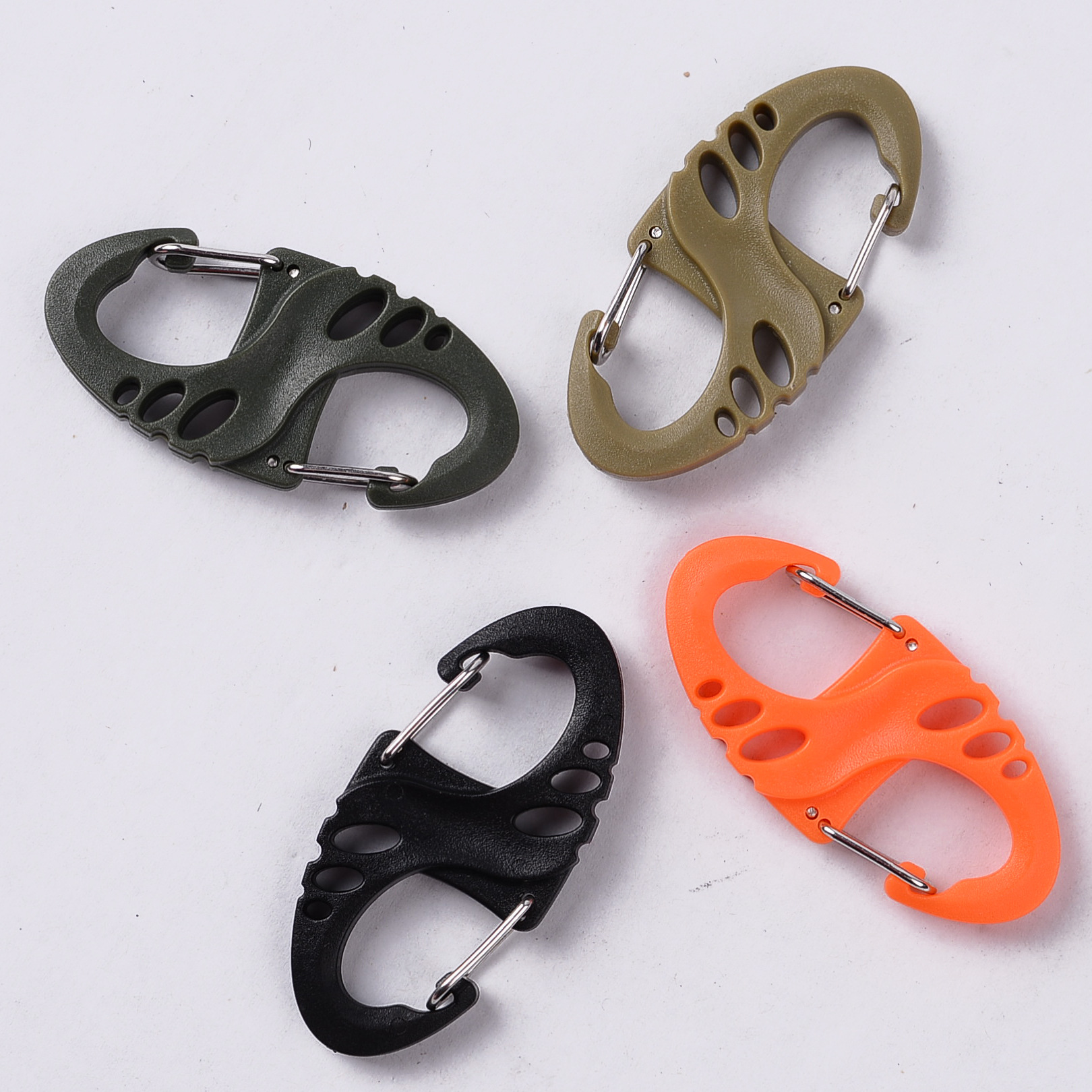 アウトドア用品 バックル プラスチック スチール 軽量 中空 S字バックル 8字バックル 登山 バックパック クイック フック カラビナ キーホルダー