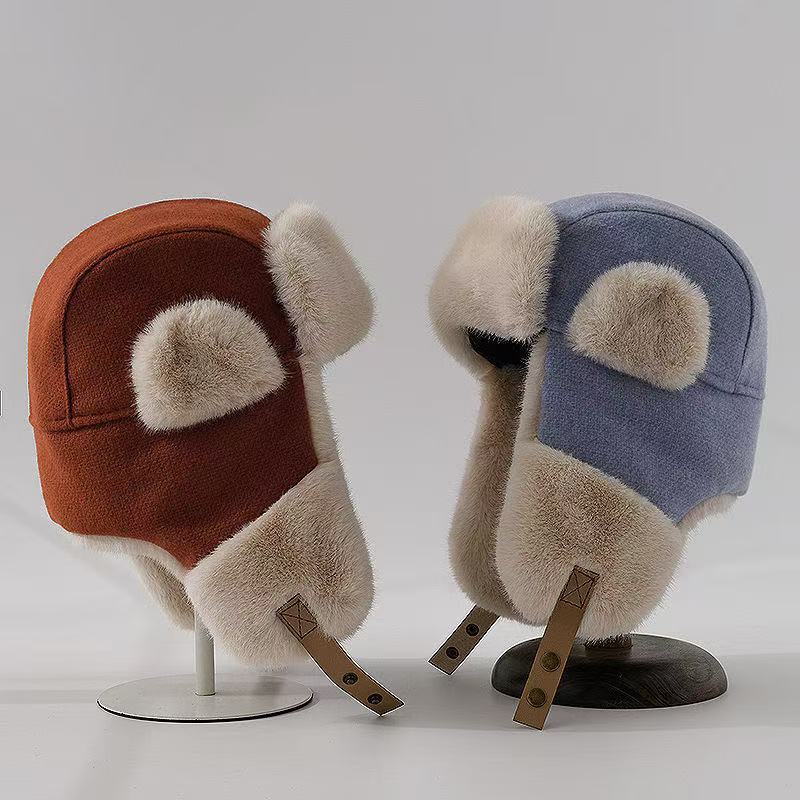 2024秋冬の新型の毛毛熊の耳の帽子の子供のミンクの毛のかわいい耳の帽子の韓国版の百合の保温帽子