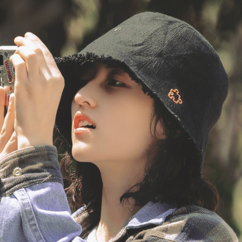 張子楓は同じジグソーパズルの漁師帽の女性のすっぴんで顔を隠します。黒い帽子は顔を見せます。