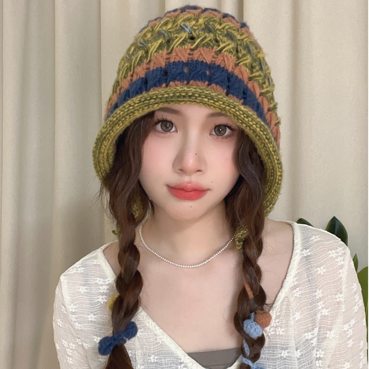 日本製 秋冬 手編み カラフルボール付き バインディングウールハット レディース 防寒 耳当て付き 多用途 ニットキャップ
