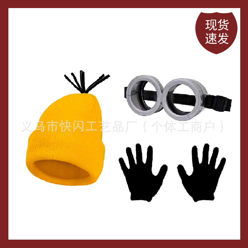 小黄人神盗乳父帽子ニット帽手袋メガネセット衣装道具コスプレ