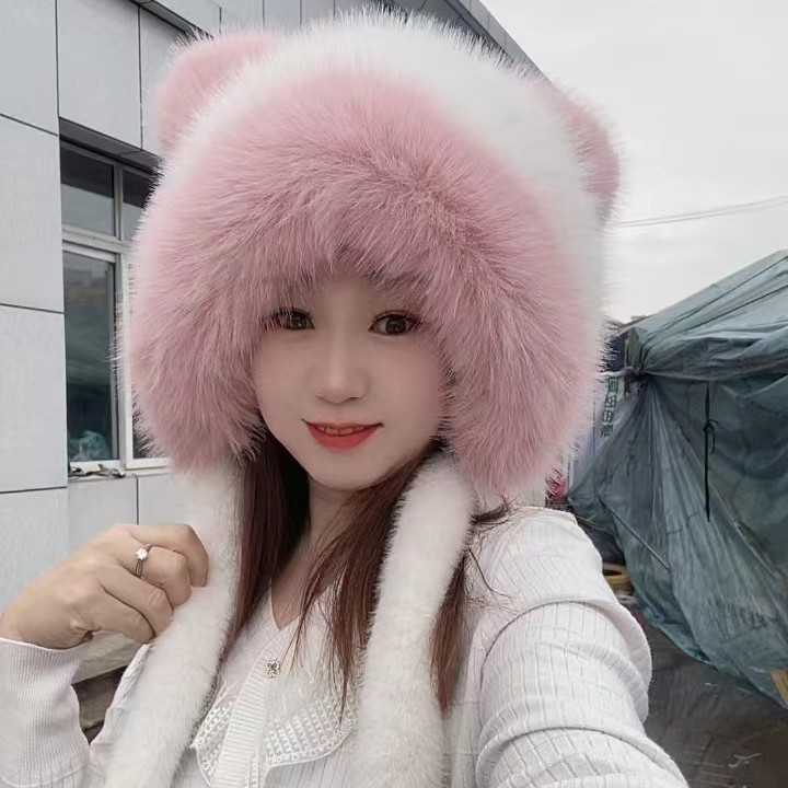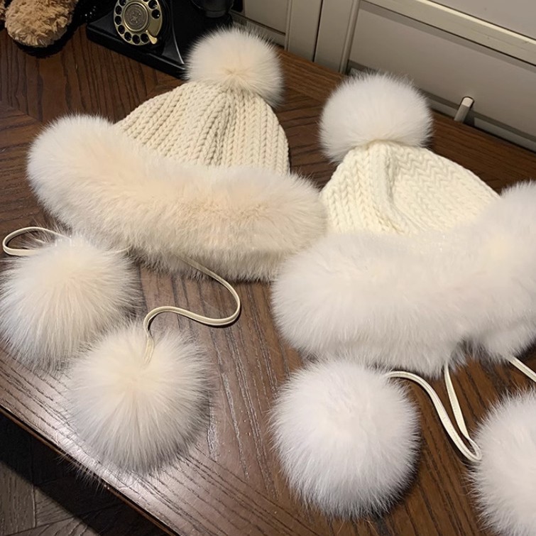 韓国の本物のキツネの毛玉帽子は耳を保護します。