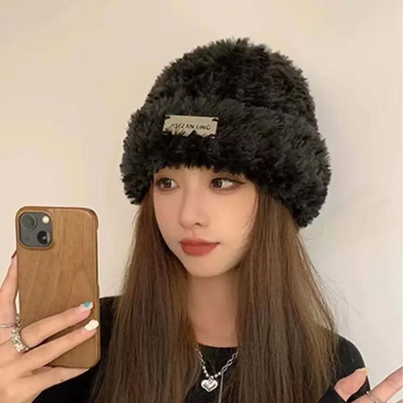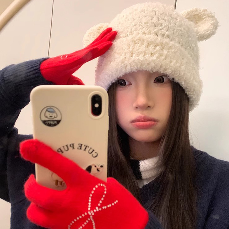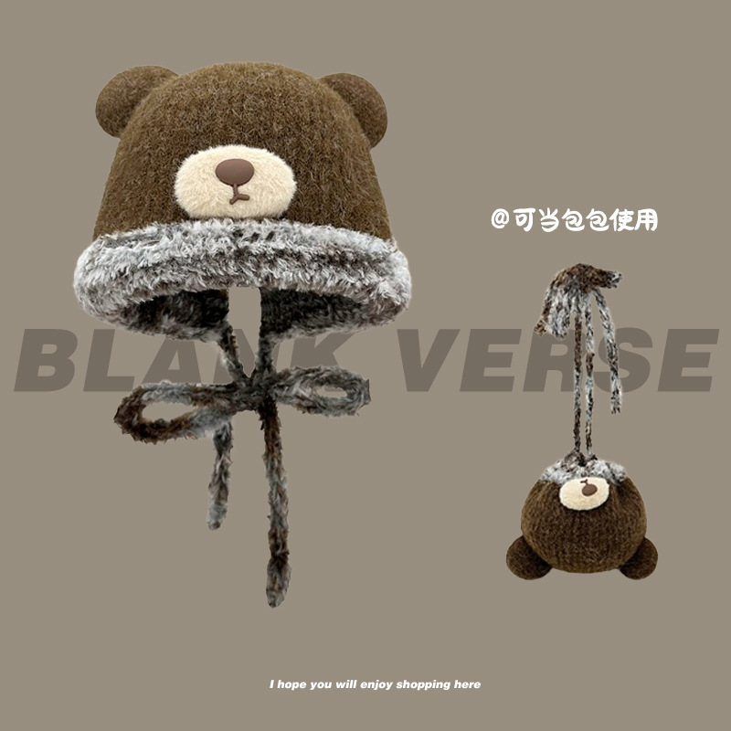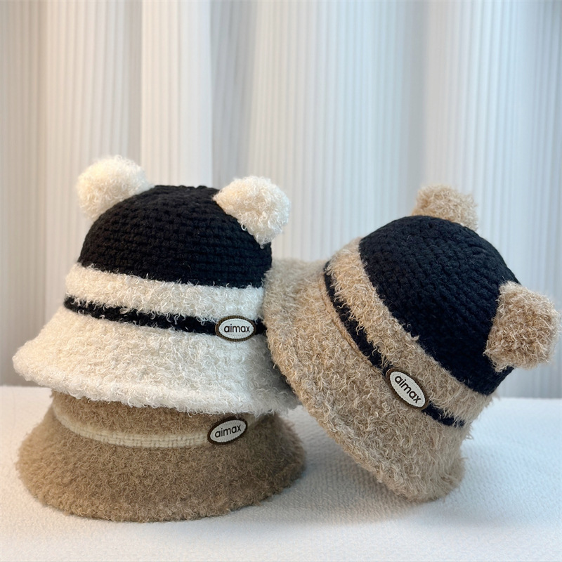 冬ニットビッグヘッド秋冬かわいいクマのウール帽子耳顔ベルベット帽子秋冬ゆったり暖かい耳保護