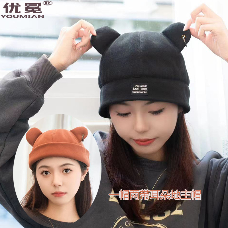 新型地主帽男女秋冬保温瓜皮帽ファッション百合熊耳韓国版帽子かわいい潮