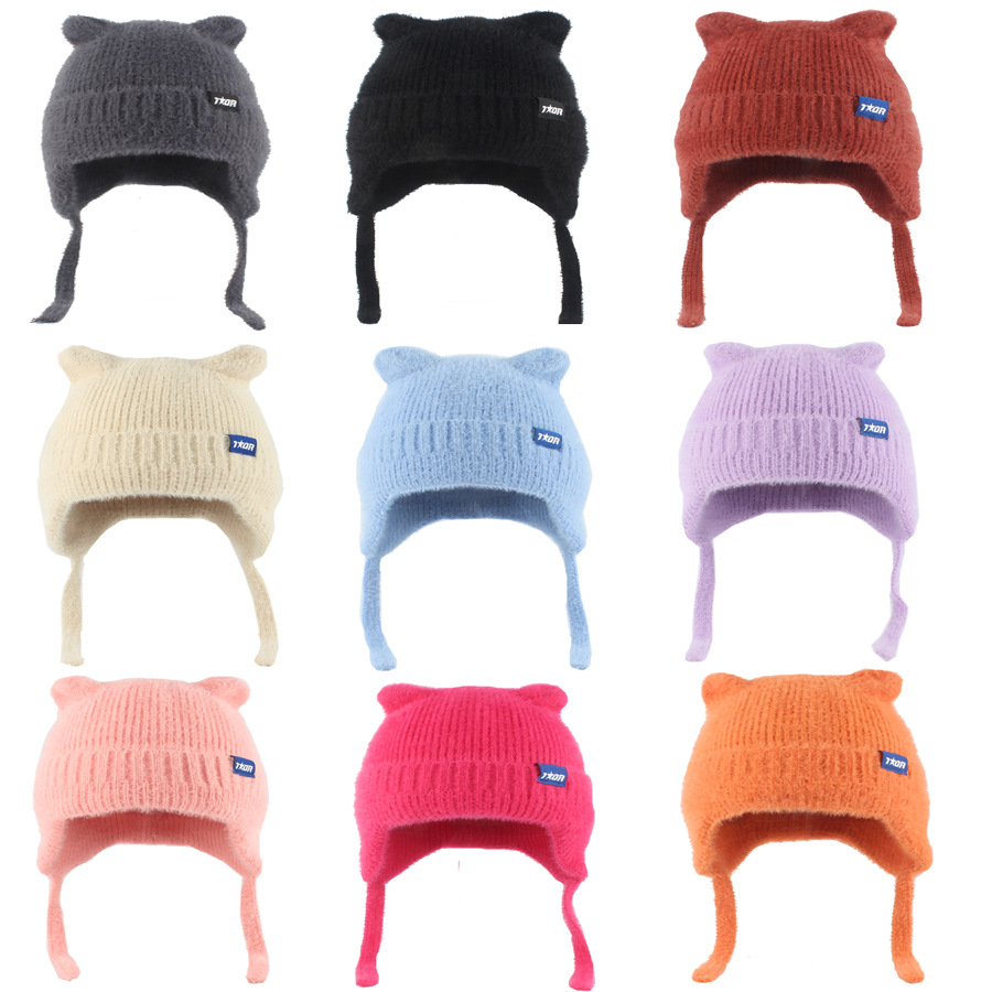 ミンク編み帽子子供秋冬保温耳保護帽子韓国版毛毛玉ミンク帽子厚メーカー直供