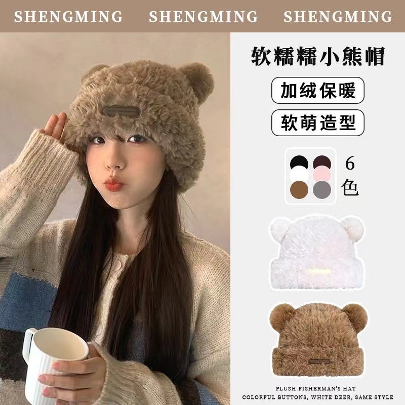 秋と冬の女性のかわいいクマのぬいぐるみ帽子新しいホットスタイル厚みのある耳保護ニット帽子韓国スタイルのファッショナブルな大きな頭の帽子