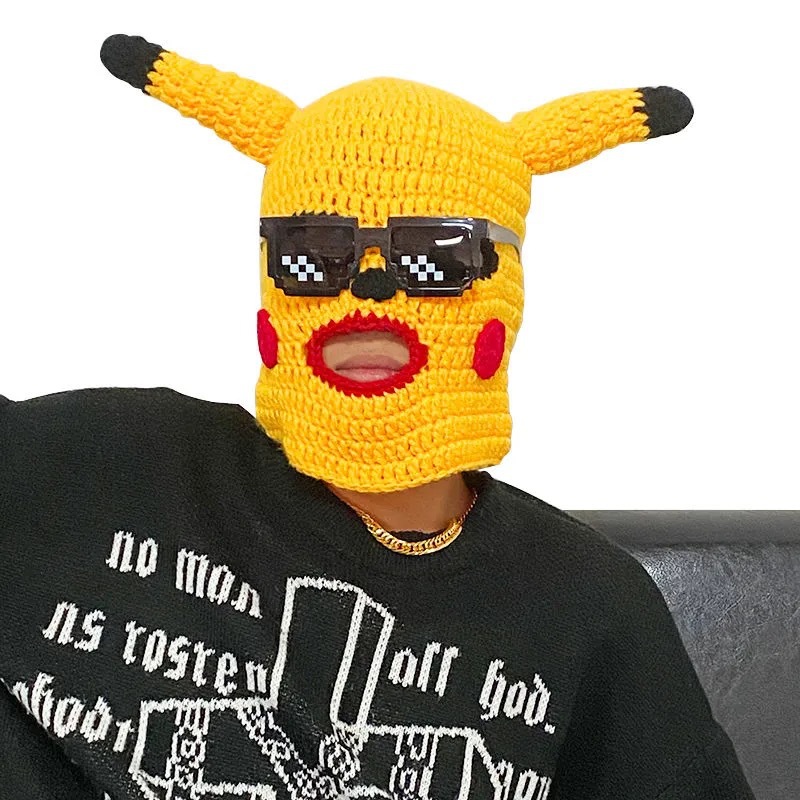 ネット赤ピカチュウ頭カバー帽子マスクマスク全顔冬マスク男お笑いパーティー砂彫刻道具