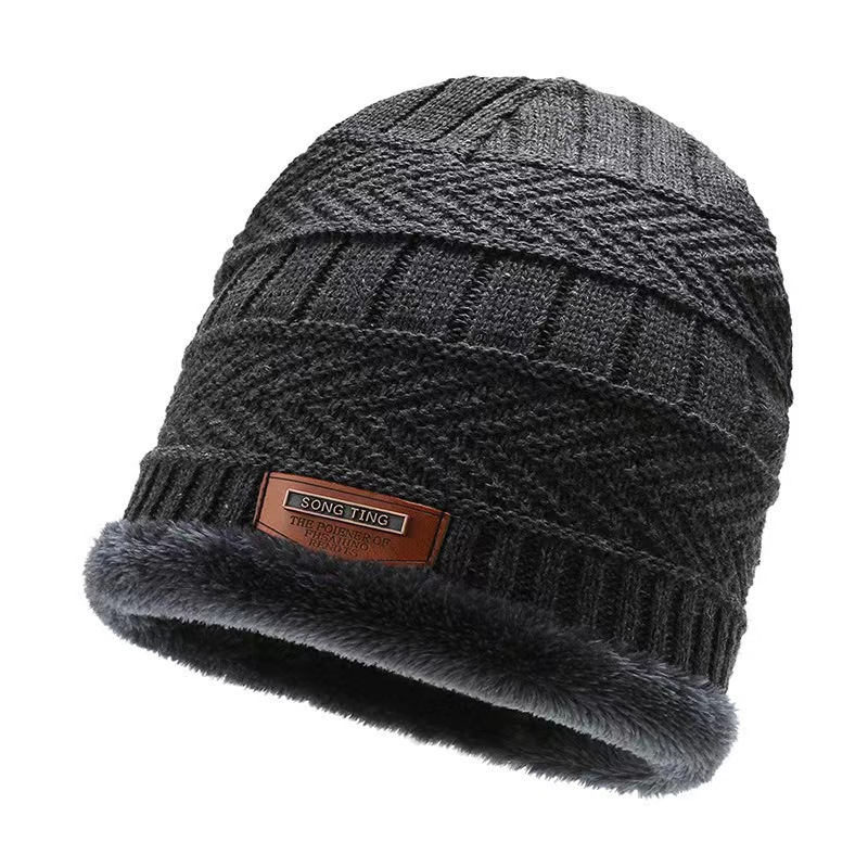 帽子男冬防風防寒保温毛糸ニット帽ファッション厚手ベルベット包頭帽男女百合洋