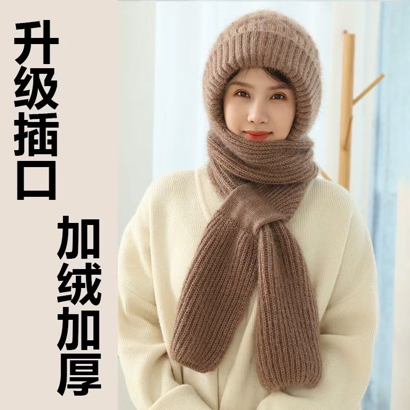厚みのある秋冬用帽子とスカーフが一体化した冬用二層暖かいウールニットネットセレブ人気ニット風雪