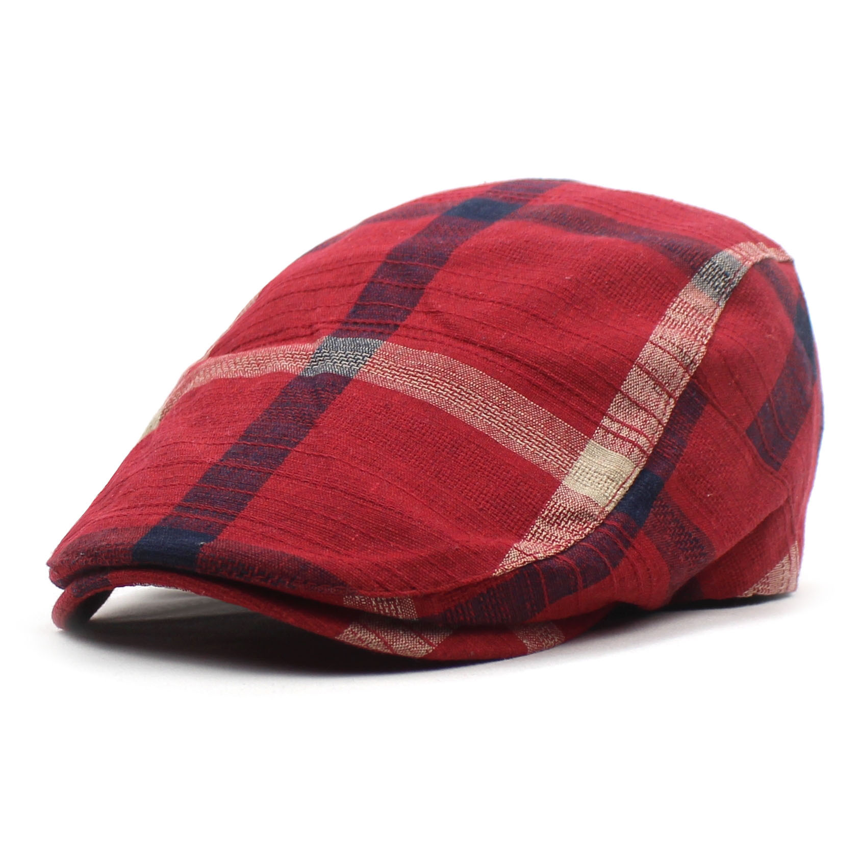 2021新品ポリエステル薄手ハンチング男女レトロ帽子格子ベレー帽屋外日よけ帽前进帽子