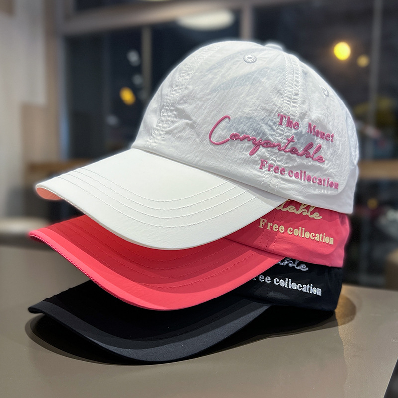 夏レタープリントレディースアウトドアカーブブリムソフトトップ野球帽、ファッショナブルでシンプルな韓国製日よけと日焼け止めひさし付きキャップ、メンズ