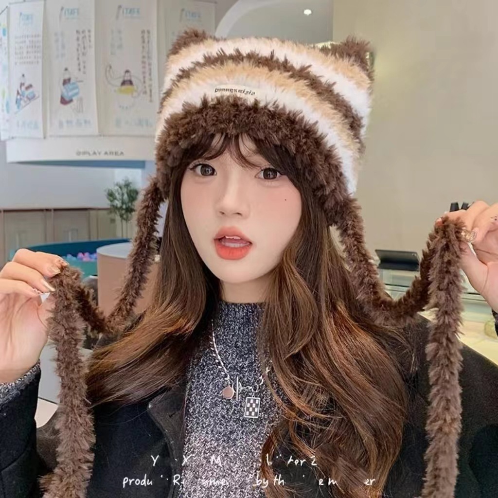 ウールの帽子の女性の冬の韓国版の百合帽子のかわいいネットの赤い猫の耳のベルベットのニットの頭の帽子は顔の小さい女の子を現します。