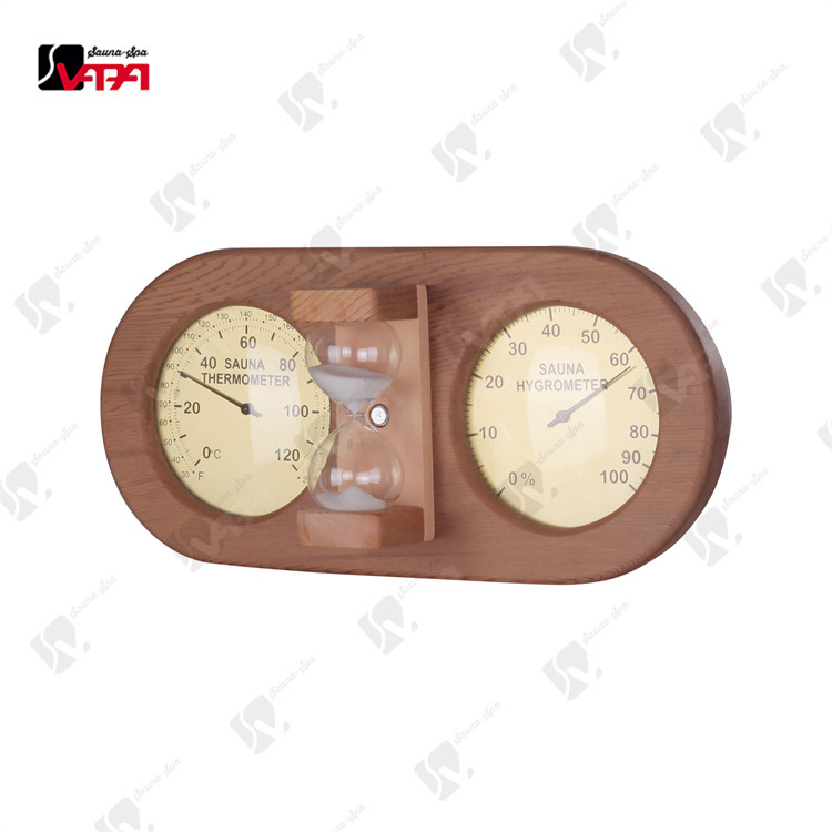 工場価格直販ダブルバンド砂時計金色文字板木製温湿度計紅雪松サウナ部品
